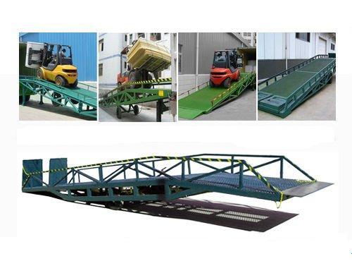 移動登(dēng)車橋(qiáo)是與叉車配合使用的(de)貨物(wù)裝卸專用輔助設備(bèi)。有了它,叉車能直接(jiē)從地(dì)麵駛(shǐ)入汽車車廂(xiāng)內進行批量裝卸作(zuò)業。產品采(cǎi)用人(rén)工液壓動力(lì),不需接動力電源。隻需單人操作,即可實(shí)現貨物的安全快速裝卸。它可使企業減少(shǎo)大量勞動力,成倍提高裝卸作(zuò)業效率,加快貨物流通速度,獲取更大經濟效益。