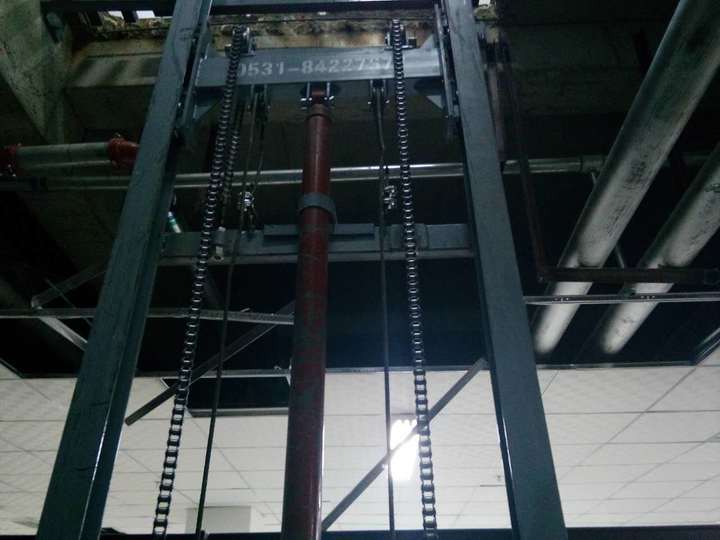 2、導軌係統:主要由導軌、導軌輪和導軌架等組成(chéng)。它的作用是限製台麵和對重的活(huó)動自由度,使台麵和對重隻能沿著(zhe)導軌作升降運動。