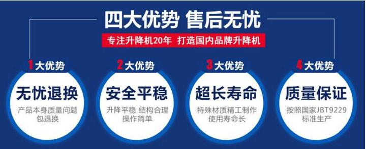 服(fú)務承諾:公司(sī)致力於為客戶提供高效、周(zhōu)到、全麵的升降作業平台維護保修保養服務,始終把給客戶提供優質服務(wù)作為公司贏得市場的關鍵。高質量的升降作業平台產品和優質的服務是企業(yè)生存的(de)根本,也是我(wǒ)們公司一貫的宗旨。