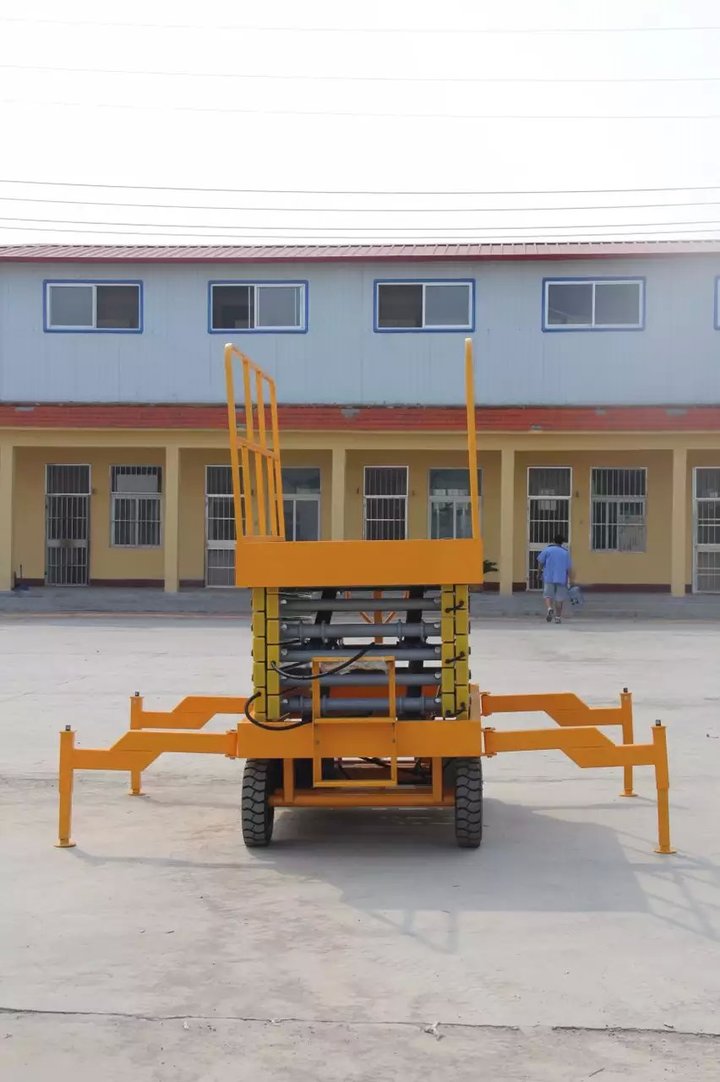 看圖移動式升降(jiàng)作業平台此平台式濟(jì)南宇(yǔ)軒升(shēng)降(jiàng)機械有限公司(sī)製造的顏色為黃色此顏色具有光線強豔麗(lì)的特效把支腿打開方便客戶了解產品。移動式液壓升降機的使用更加要注意的是要先支好支腿,支腿是液壓升降機的關鍵部位。在操作移動式升(shēng)降(jiàng)機支腿的時候,你最好確定支腿的固定性,液壓升降機的使(shǐ)用(yòng)要做好準備工作,比(bǐ)如檢(jiǎn)查一下線路,還要檢查下各個環節是否是正常的並且有沒(méi)有送到的現象,以避(bì)免(miǎn)安全問題的發生,還要進(jìn)行試驗(yàn)升降。