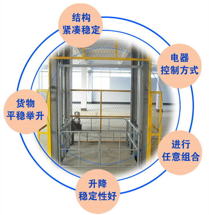 導軌式升降機是利用液壓缸上升和下降的原理製造的一種起重設備,又稱軌道起升貨梯,是(shì)一(yī)種常用(yòng)的無剪式液壓起重設備。由於其承重大,結構簡單,是大型工廠,賓館,物流中心,汽車4S服(fú)務店等場所經常使用的起重設(shè)備。該裝置具有幾(jǐ)個優點,操作簡單,穩定性好,安全係數高的升降平台。