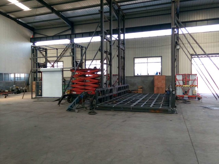 大(dà)噸位液(yè)壓升降貨梯,導軌式升降貨梯是濟南羞羞视频网站升降機械有限公司每年長做的貨(huò)梯之一有著技(jì)術非長成熟的生產流程此圖這台升降貨梯是安裝於山西大同的貨梯客戶要求達到載重20噸 台麵尺寸達到4米乘以8.5米,升(shēng)高18米的高度製作時間15天安裝(zhuāng)周期15天圓滿完工,陸續客戶又訂購了兩台(tái)上鏟車的(de)貨梯。