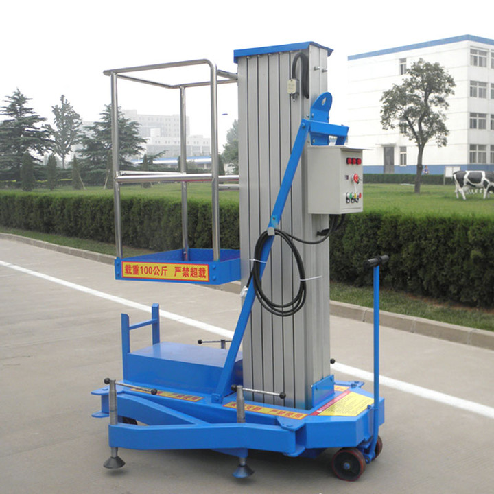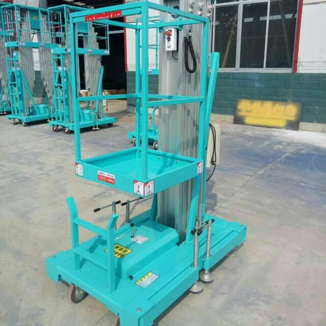 鋁(lǚ)合金升降機采用(yòng)高(gāo)強度優質鋁合金材料,具(jù)有造型(xíng)美觀(guān)、體積小、重量輕、運轉靈活,推行方便。升降平穩、安全(quán)可靠等優點。它輕盈的外觀,能在極小的空間內發揮最高的舉升(shēng)能力。廣泛(fàn)用於工廠、賓館、餐廳、車站、影劇院、展覽館等場所,是保養(yǎng)機具、油漆裝修、調換燈具、電器、清潔保養等用途的最佳(jiā)安全伴侶能夠在不同(tóng)工作狀態下,不需外接電源,不需(xū)外來動力牽引即可升降(jiàng)自如,而設備的行走轉向也隻需一人便可完成。