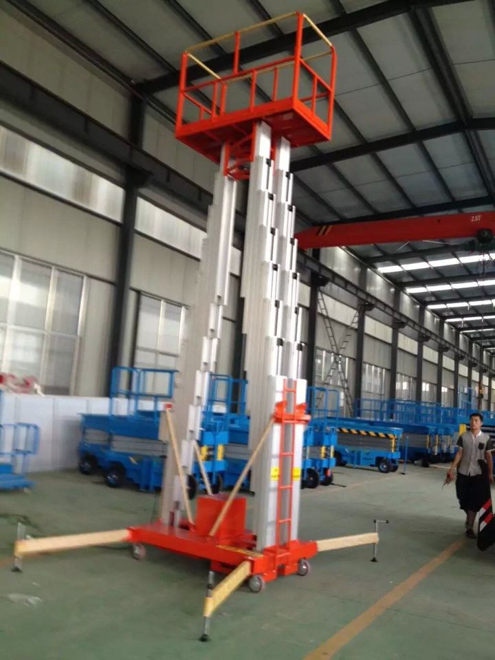 四立柱鋁合金升降機整體采用(yòng)高強度鋁型材精製而成由於型材強度高,采用(yòng)四桅柱式結(jié)構,穩定性極好,運轉(zhuǎn)靈活,載(zǎi)重量大,平台麵積大,推行方便。它(tā)輕盈的外觀,能在極小的空間(jiān)內發揮較高(gāo)的舉升能力(lì)。使升降台的偏轉與擺動極小。該升降機廣泛用於廠房、賓館、大廈、商場(chǎng)、車站、機場、體(tǐ)育場(chǎng)等。可用作電力線路、照明電器、高架管道等安裝維護,高空清潔等(děng)單人工(gōng)作的高空作(zuò)業。