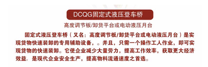 3、結束過程:當貨(huò)物裝卸完畢後,按住上升按鈕抬起大板,小板(bǎn)自動複(fù)位,當大板抬到固定高度時,然(rán)後鬆(sōng)開按鈕,登車橋在自重作用下慢慢複位,整個工作過程完畢。